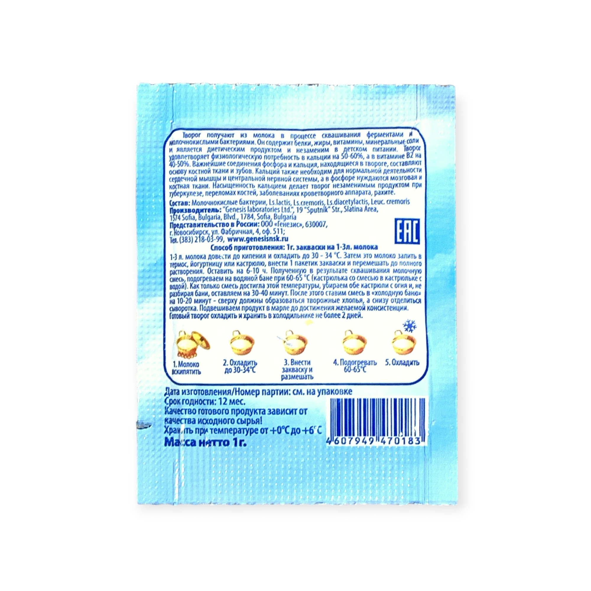Закваска Творожок Genesis, 1 пакет от 100 руб. с доставкой. Пункт выдачи в Канске. Интернет магазин по сыроделию. Всё всегда в наличии.